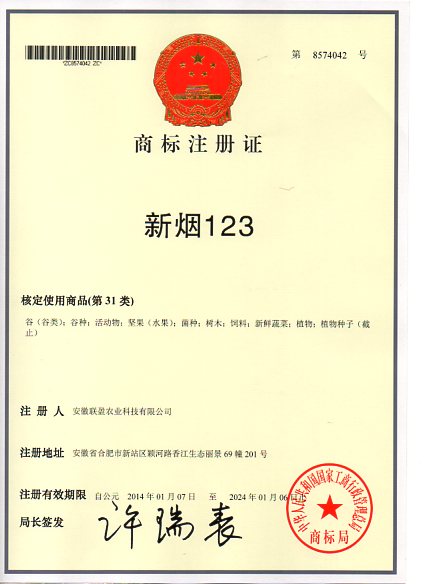 第31类“新烟123”商标注册证