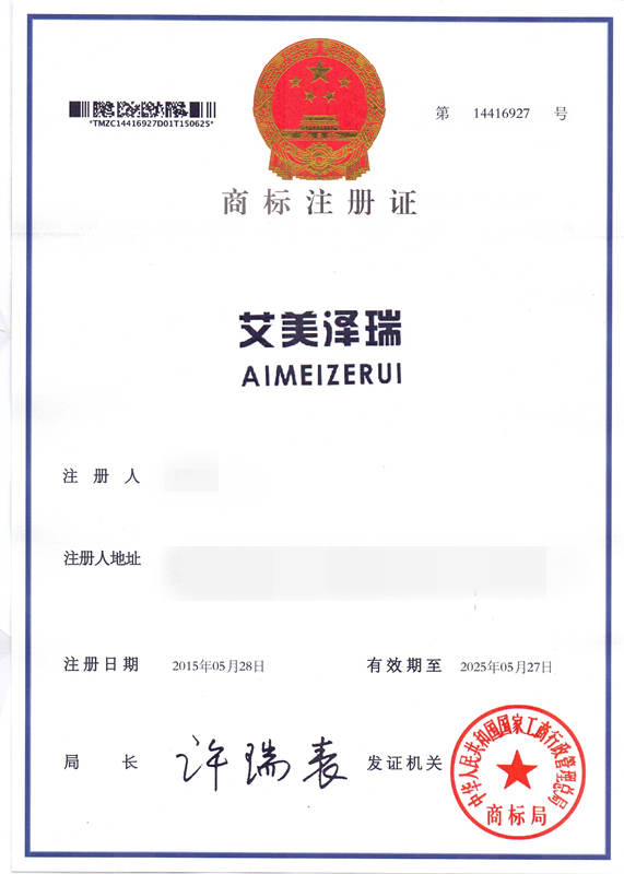 第35类“艾美泽瑞”商标注册证