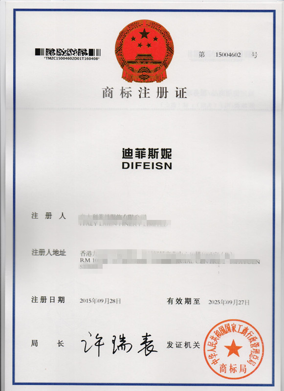 第25类“迪菲斯妮”商标注册证