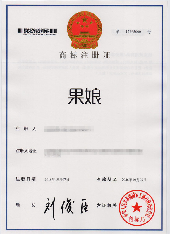 第42类“果娘”商标注册证