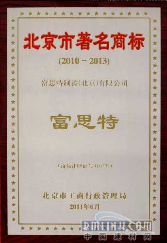 【中国建材网】北京市工商局于2011年6月30日发布行政公告,认定“富思特”商标为“2010年北京市著名商标”,富思特跨入京城著名商标行列。 成为北京市著名商标需要该商标为消费者所公认,具有较高的知名度;使用该商标的商品质量稳定,符合国家有关标准;使用该商标的商品在最近期间内连续三年的销售额、纳税额、利润等主要经济指标在同行业中领先,具有较高的市场占有率等多项指标同时满足。 富思特制漆(北京)有限公司创立发展十五年来,一直注重品牌培养和商标保护,先后注册了三十多个类别及产品的商标,企业还在内部强化了技术开发、产品质量控制和施工管理规范服务等一系列措施,在建筑工程市场上严格执行经销商授权制度并实施工程现场监查制度,基本杜绝了假冒产品的侵蚀,确保富思特品牌和商标的含金量。在品牌建设上走出了一条“专注,专业,专家”形象的成长之路,打造出独特的“最具影响力的建筑工程合作平台”。 “富思特”商标获得北京市著名商标这一荣誉称号,使“富思特”品牌知名度及美誉度在业内持续提升,我们将始终秉承"诚信、高效、创新、团队精神"的核心价值观,凭借富思特团队强大的凝聚力、战斗力,用力度、速度、激情和团队精神浸心铸就富思特在中国建筑工程涂料、保温行业的卓越地位。用实际行动在中国这片广袤的土地上镌刻出了不朽的“富思特”!