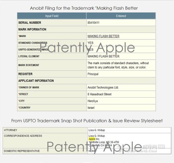 去年 1 月份的时候,苹果斥巨资收购了以色列闪存制造商 Anobit 公司。根据美国专利商标局(USPTO)今天公布的一份文件显示,苹果目前仍然支持 Anobit 公司在被收购以前就已经在申请的商标“ Making Flash Better ”。目前尚未清楚苹果是否会将这个商标用于未来产品的市场宣传。