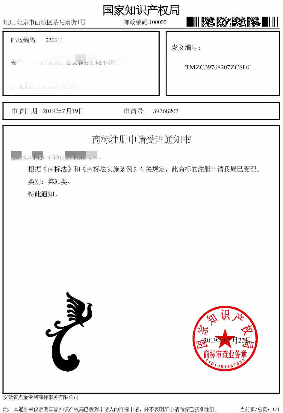 第31类“图形”受理通知书