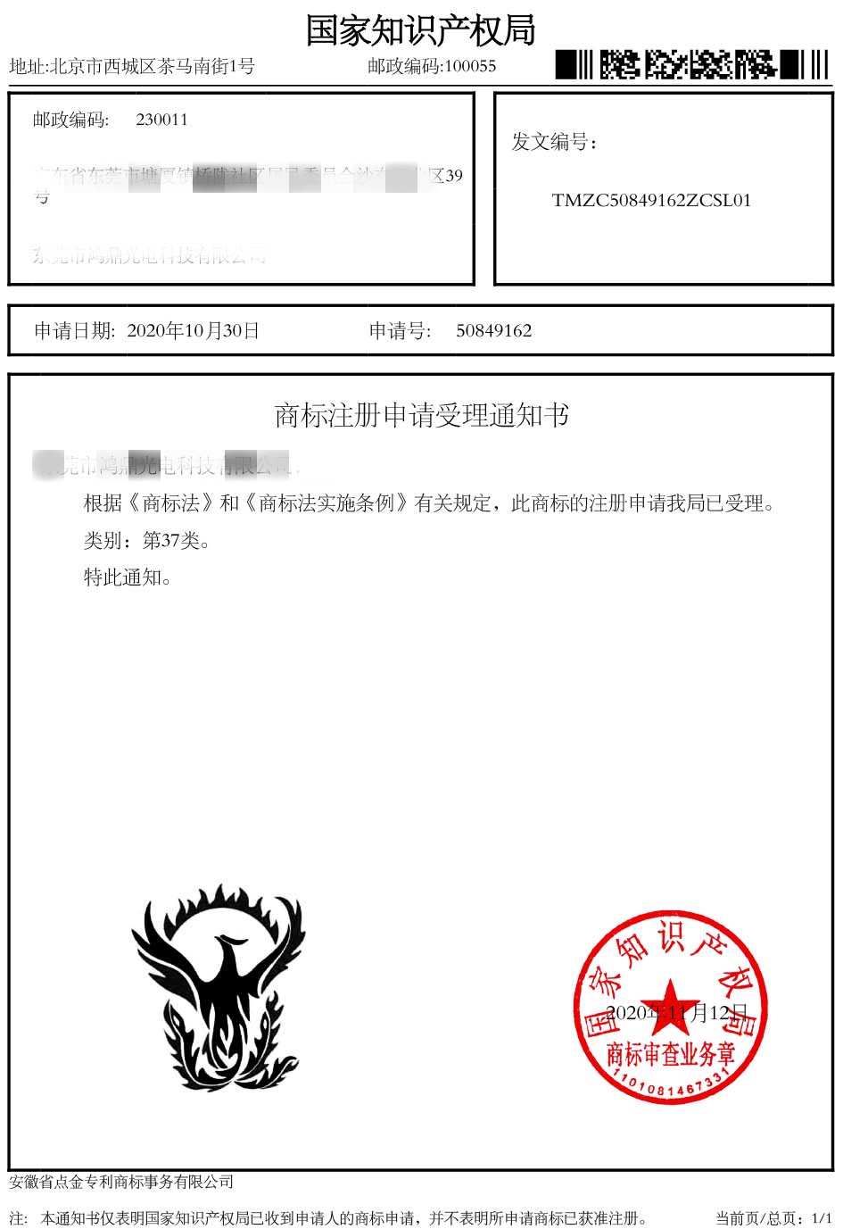 第37类“图形”受理通知书
