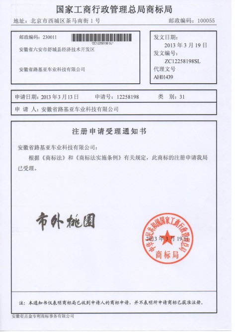 [合肥商标注册]安徽路基亚电动...