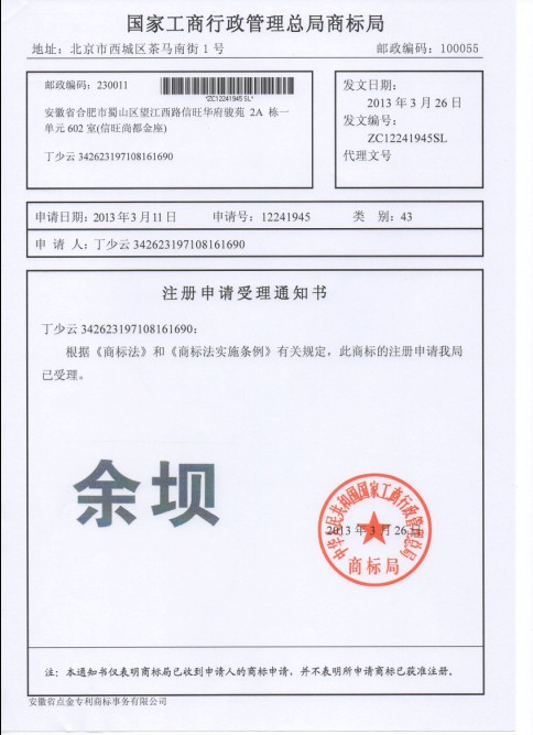 地址:安徽省合肥市站前路宝文商务大厦(白马大厦)908室  商标注册  商标代理  商标转让  安徽商标注册  合肥商标注册
