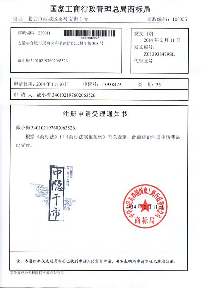 地址:安徽省合肥市站前路宝文商务大厦(白马大厦)908室  商标注册  商标代理  商标转让  安徽商标注册  合肥商标注册