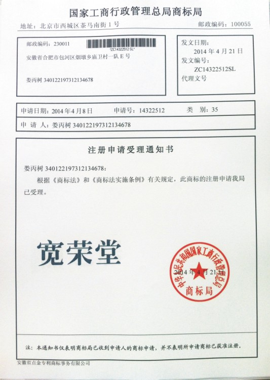 地址:安徽省合肥市站前路宝文商务大厦(白马大厦)908室  商标注册  商标代理  商标转让  安徽商标注册  合肥商标注册