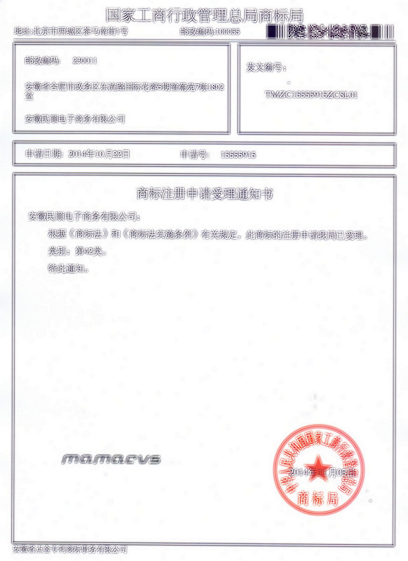 第42类“mamacvs”商标受理通知书