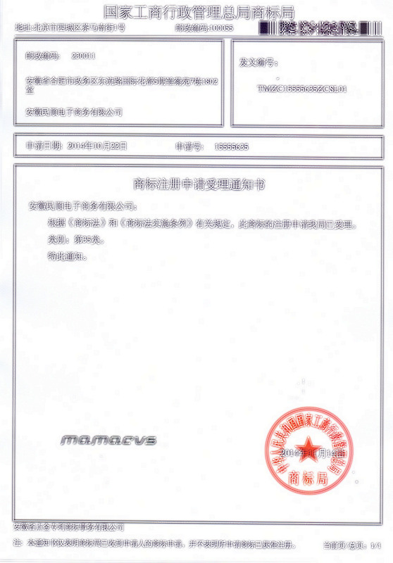 第35类“mamacvs”商标受理通知书