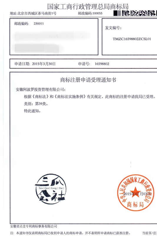 地址:安徽省合肥市站前路宝文商务大厦(白马大厦)908室  商标注册  商标代理  商标转让  安徽商标注册  合肥商标注册