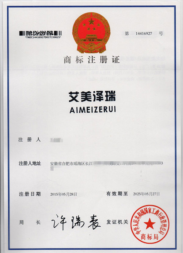 第35类“艾美泽瑞”商标注册证