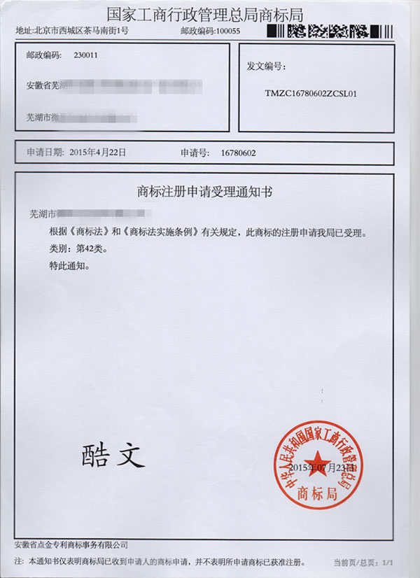 地址:安徽省合肥市站前路宝文商务大厦(白马大厦)908室  商标注册  商标代理  商标转让  安徽商标注册  合肥商标注册