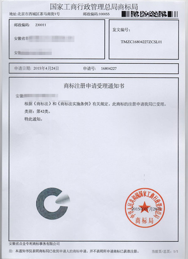 地址:安徽省合肥市站前路宝文商务大厦(白马大厦)908室  商标注册  商标代理  商标转让  安徽商标注册  合肥商标注册