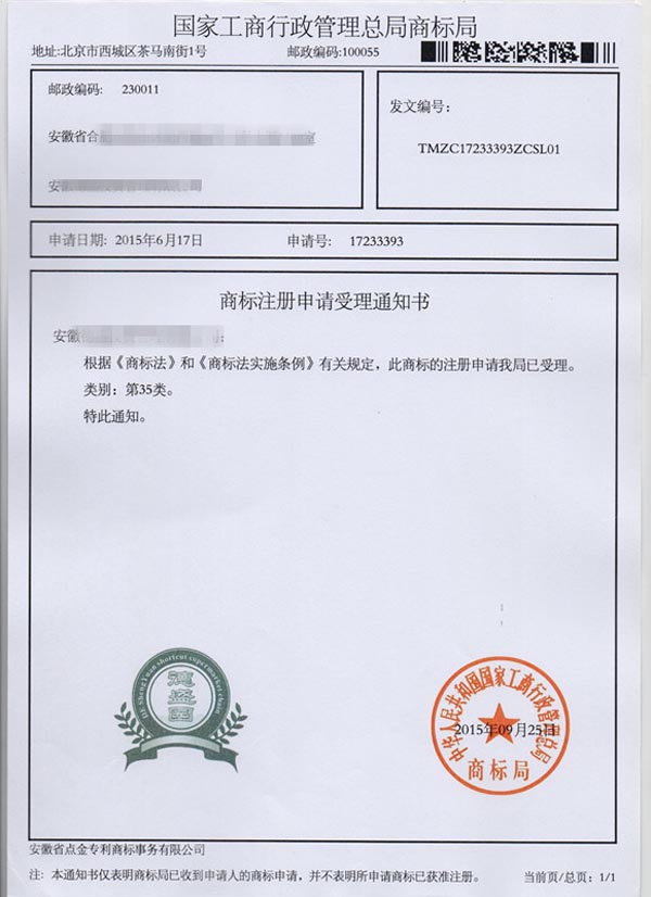 地址:安徽省合肥市站前路宝文商务大厦(白马大厦)908室  商标注册  商标代理  商标转让  安徽商标注册  合肥商标注册