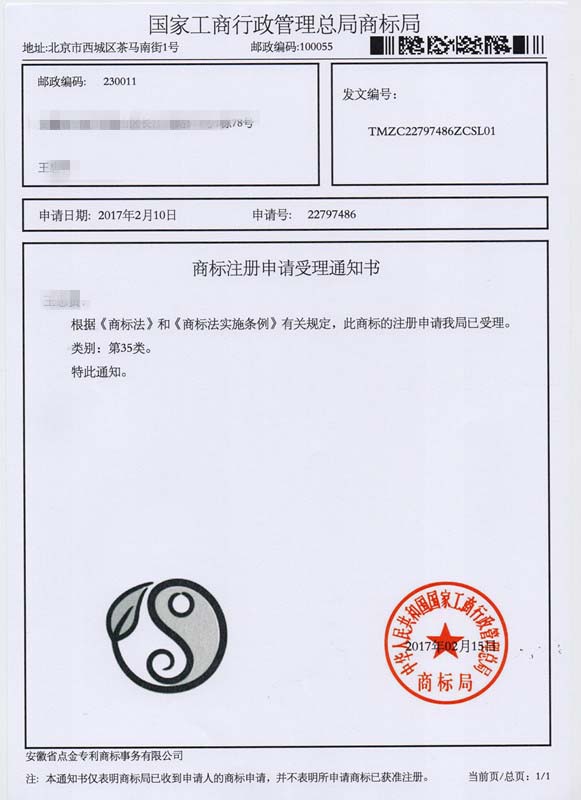 第35类图形商标受理通知书