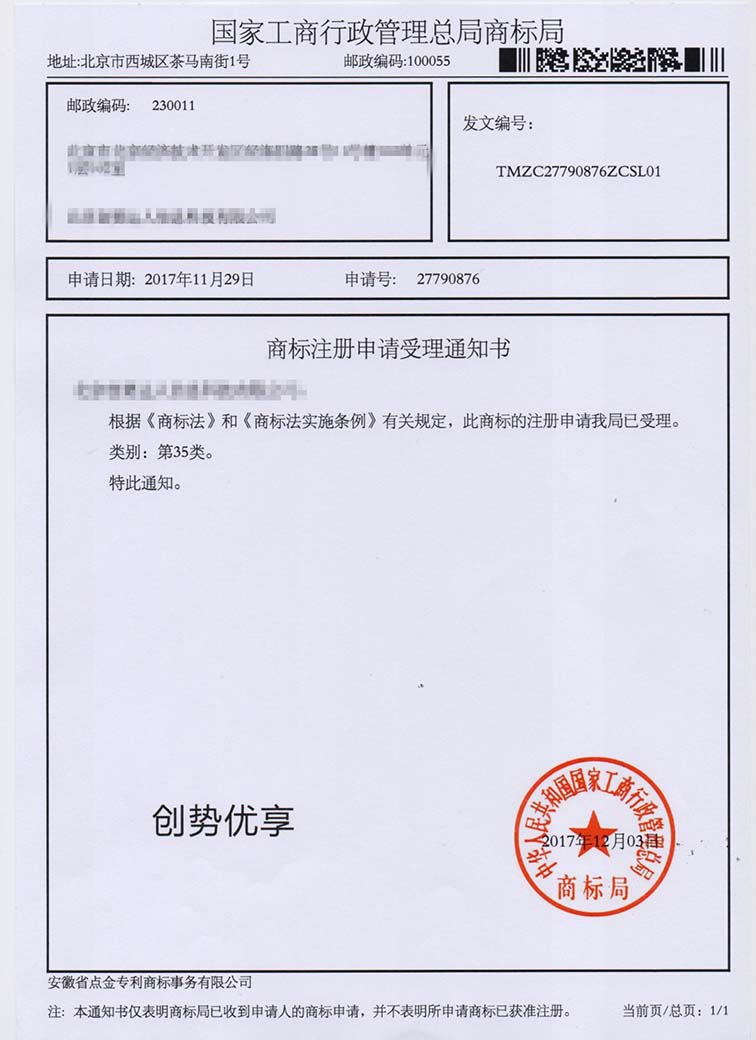 地址:安徽省合肥市站前路宝文商务大厦(白马大厦)908室  商标注册  商标代理  商标转让  安徽商标注册  合肥商标注册