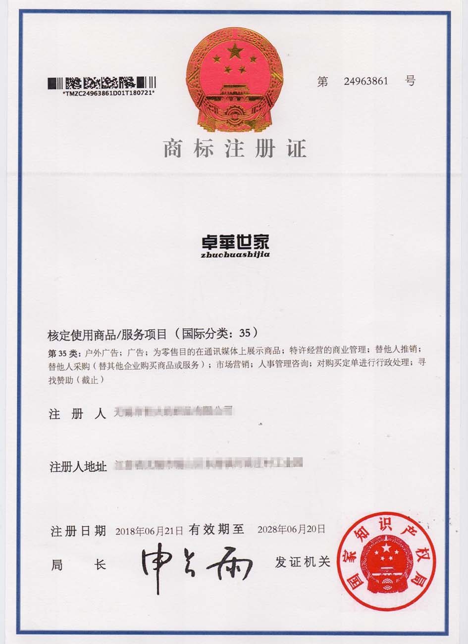 第35类“卓华世家”商标注册证