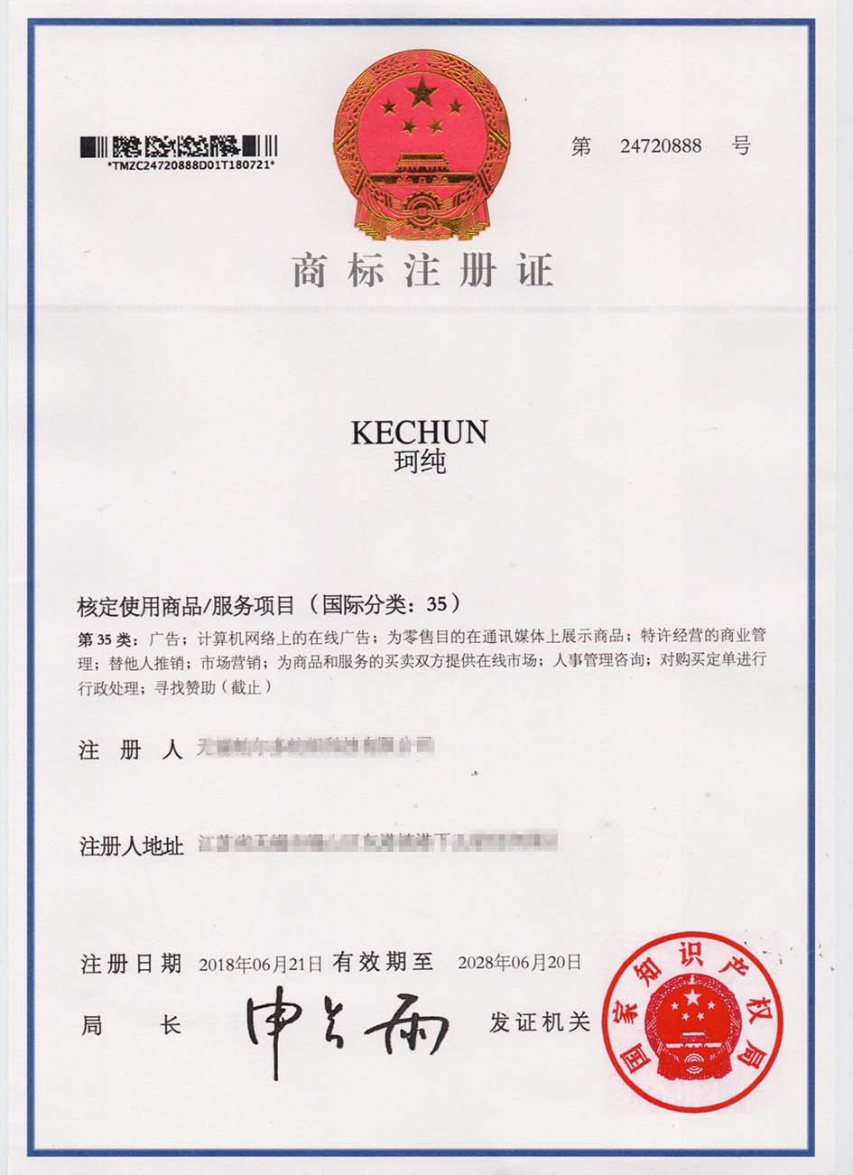 第35类“柯纯”商标注册证
