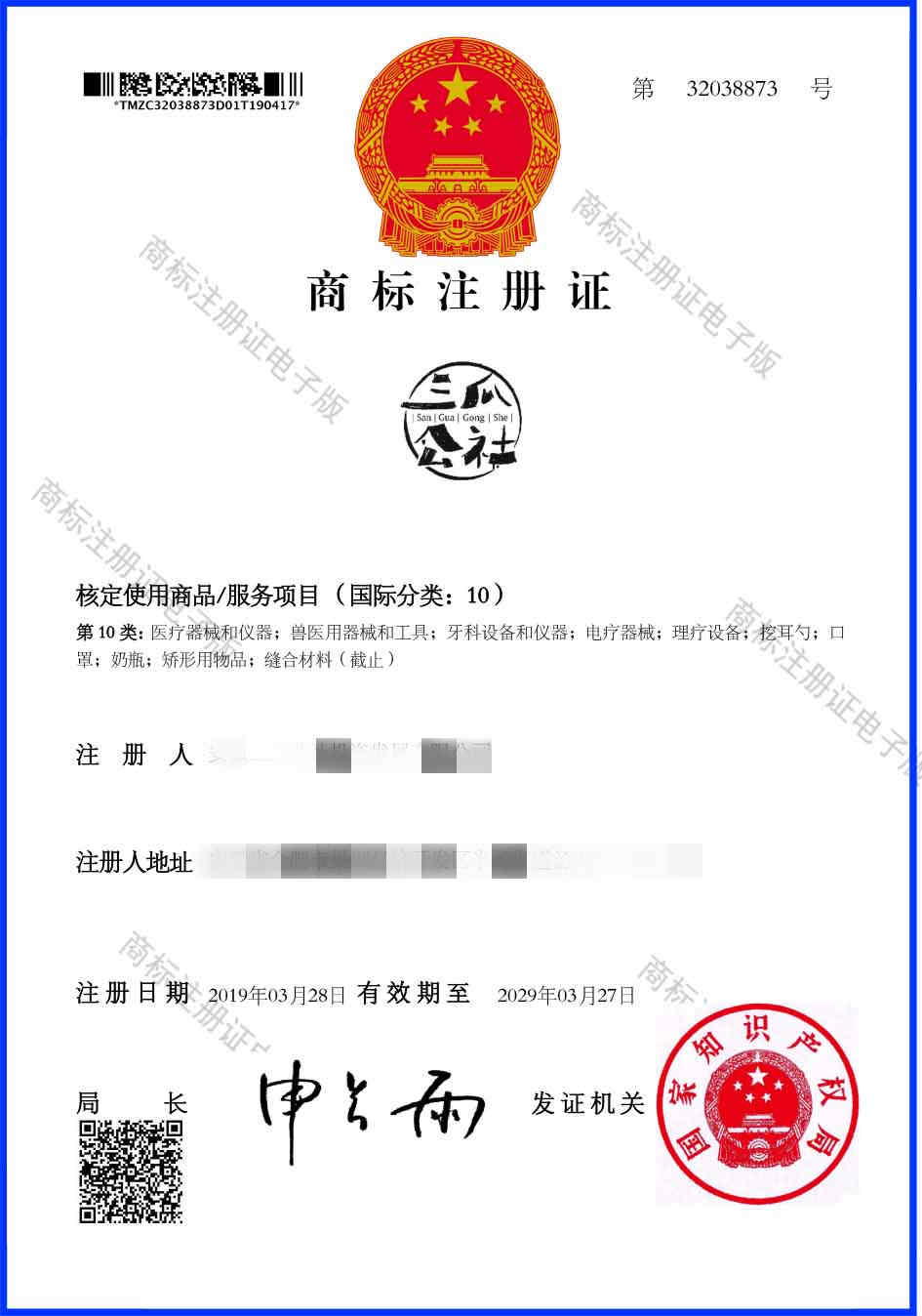 第10类“三瓜公社”商标注册