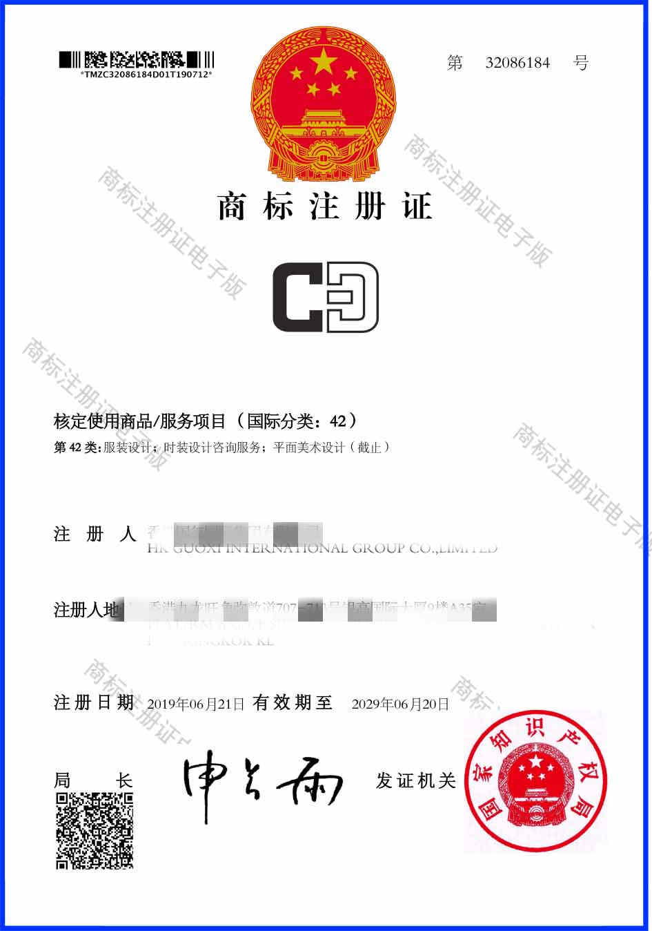 第42类“CD”商标注册证
