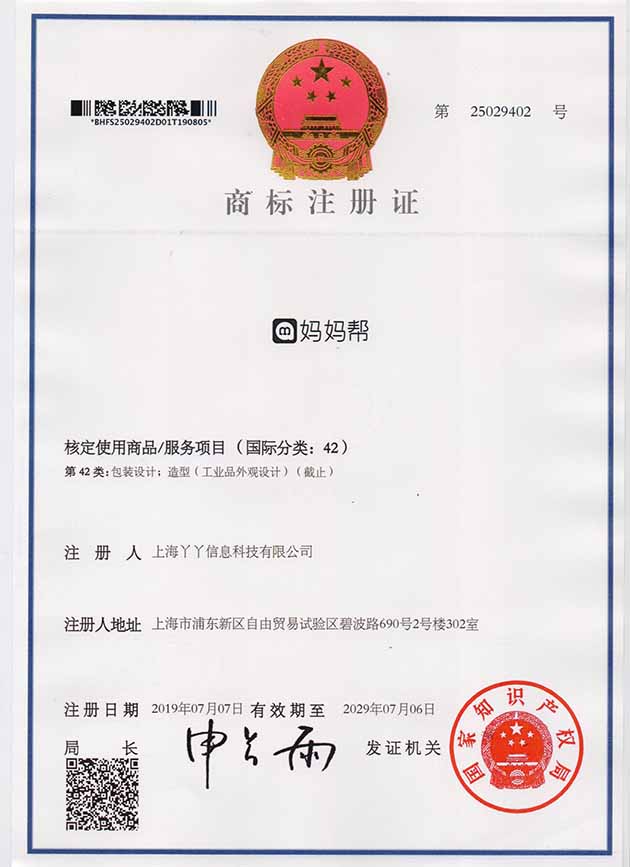 第42类“妈妈帮”商标注册证
