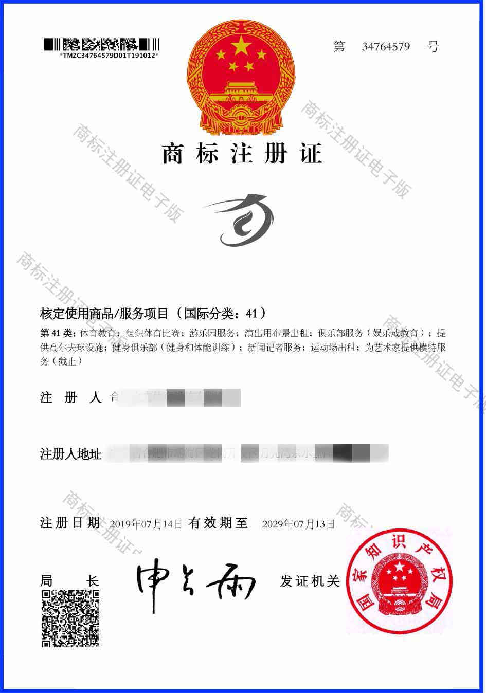 第41类“图形”商标注册证