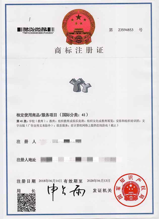 第41类“丫丫”商标注册证