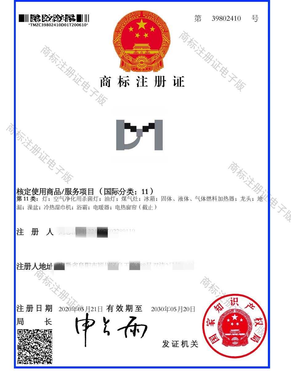 第11类“M图形”商标注册证