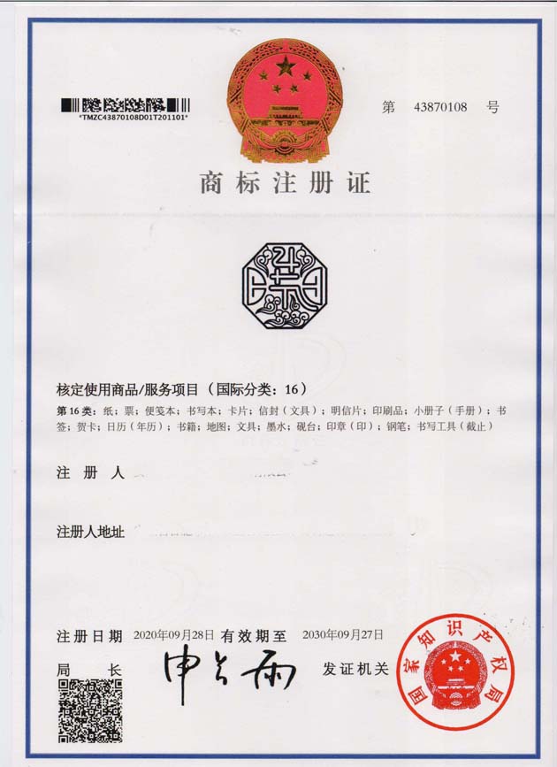 第16类“廿四节气”商标注册证