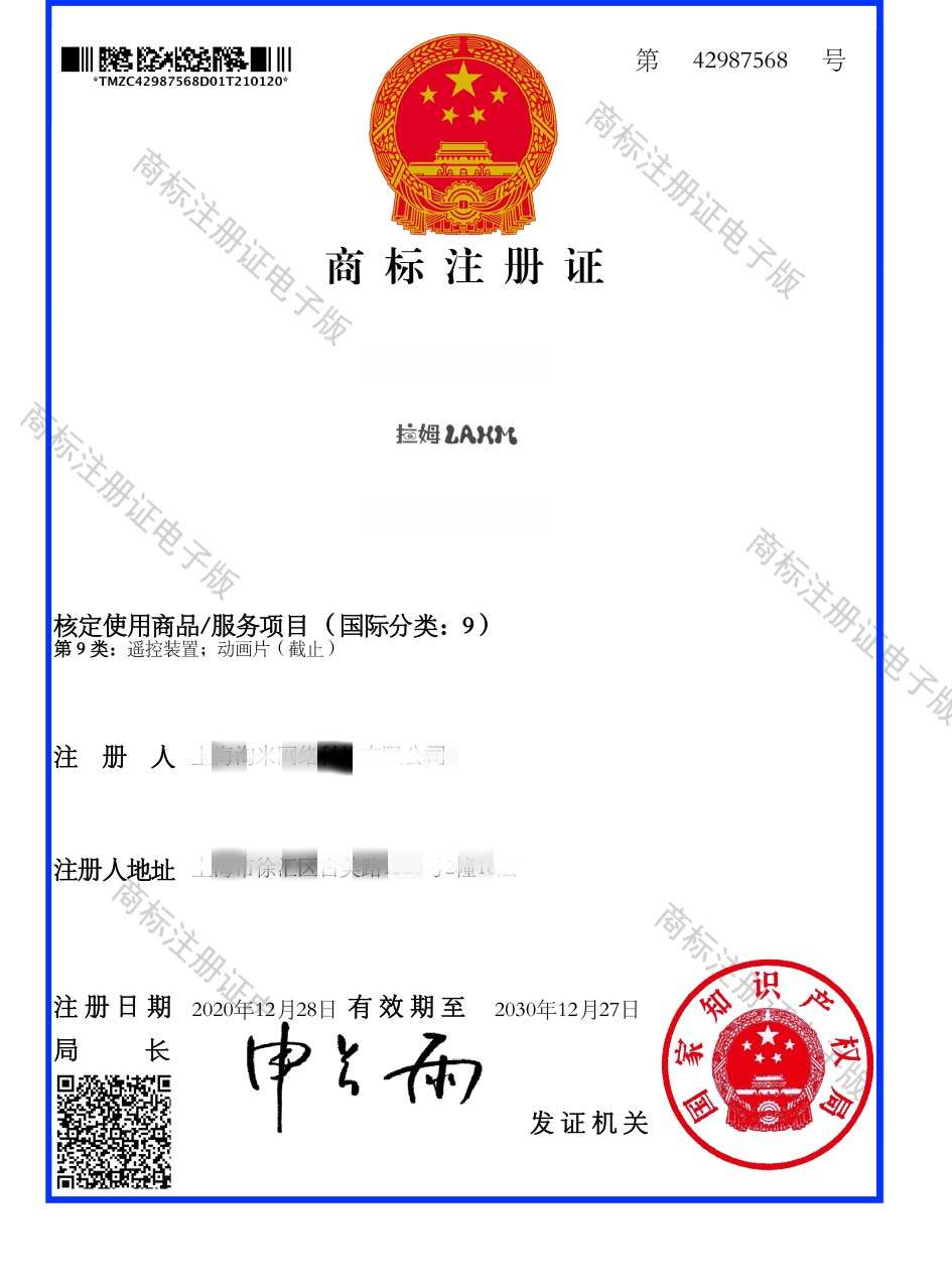 第9类“拉姆LAHM”商标注册证