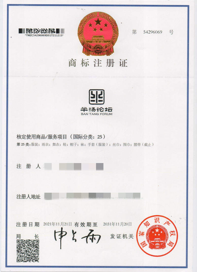 第25类“半汤论坛”商标注册证