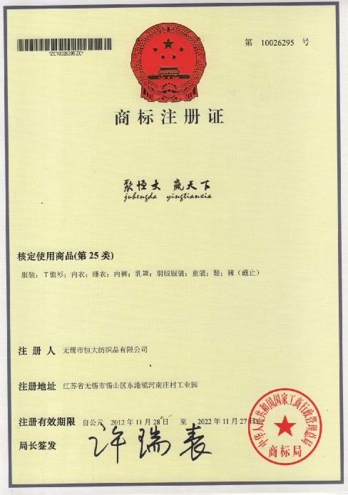 第25类“聚恒大 赢天下及拼音”