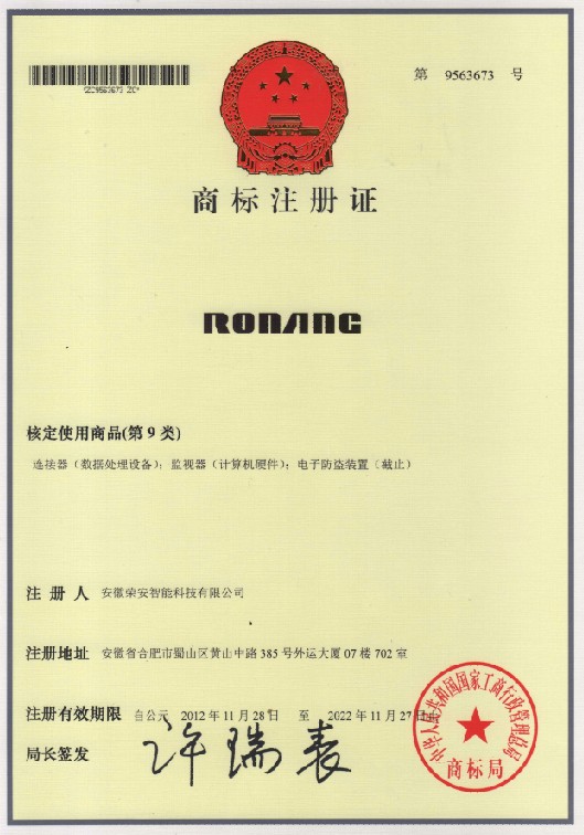 第9类“RONANG”商标注册证