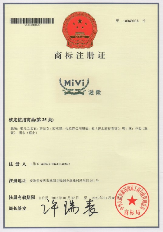 第25类“迈对”商标注册证