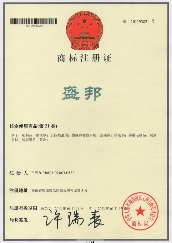 第21类“盛邦”的商标注册证