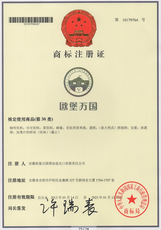 第30类“欧堡万国”及图形商标注册证