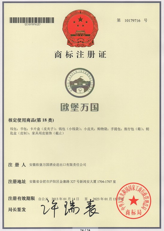 第18类“欧堡万国”及图形商标注册证
