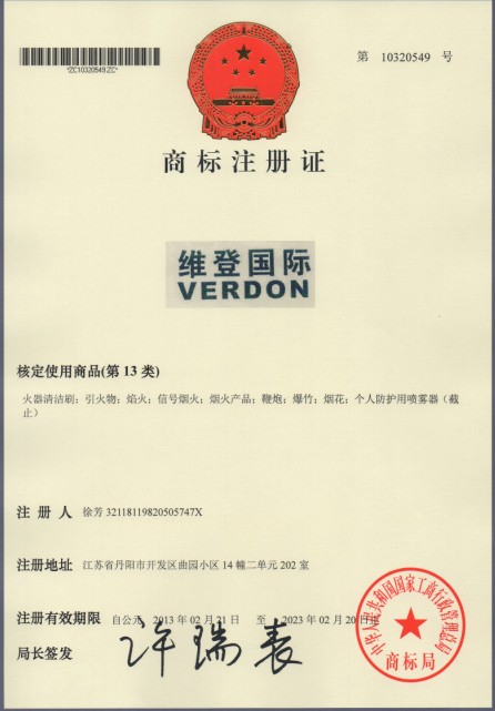 第13类“维登国际”VERDON商标注册证