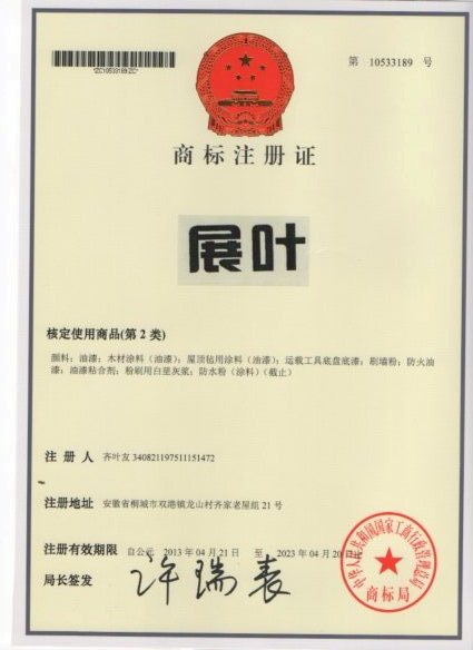 第2类“展叶”商标注册证