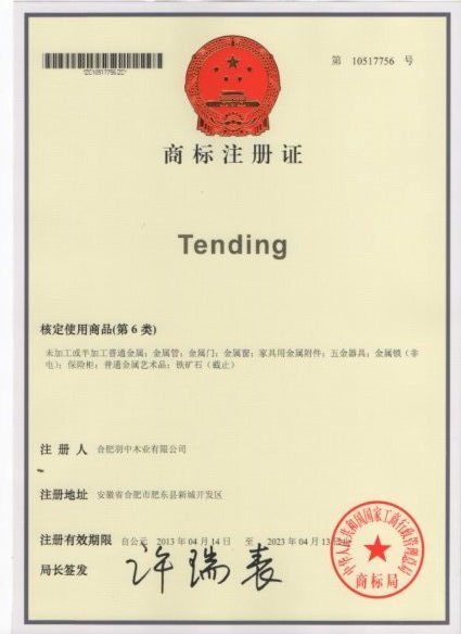 第6类“Tending”商标注册证