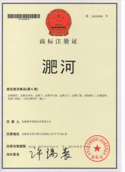 第6类“淝河”商标注册证