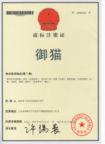 第7类“御猫”商标注册证