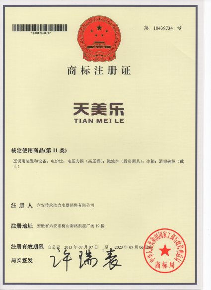 第11类“天美乐”商标注册证