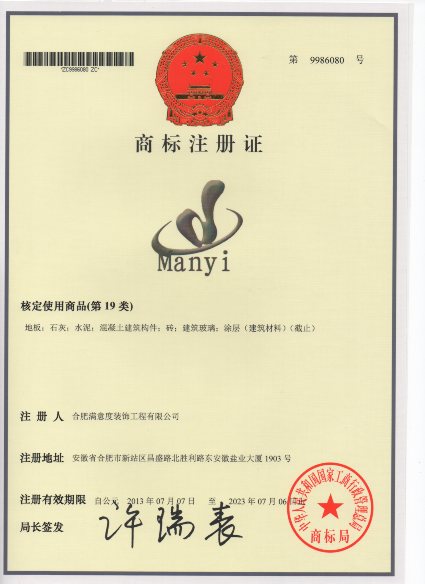第19类“manyi”商标注册证