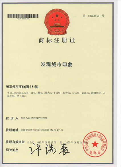 第18类“发现城市印象”商标注册证