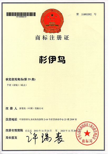 第25类“杉伊鸟”商标注册证