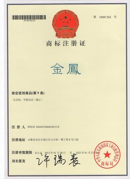 第9类“金鳳”商标注册证