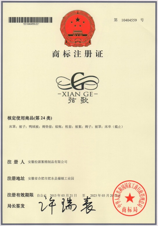 第24类“弦歌”商标注册证
