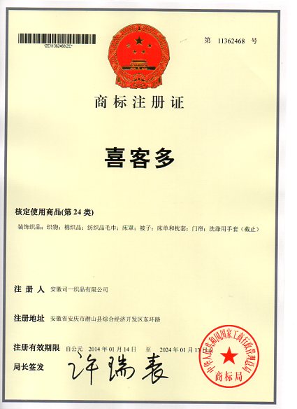 第24类“喜客多”商标注册证
